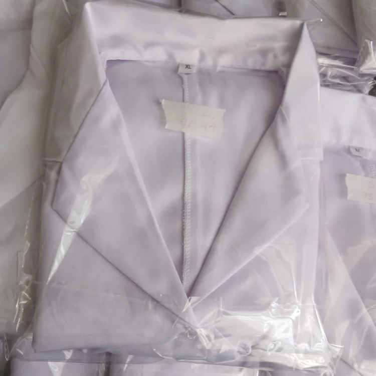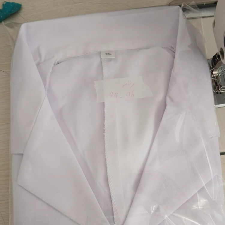 جنس پارچە ترگال سفید زنانە مردانە در سایزبندی زنانە بدون کمری دو جیب بزرگ یک جیب کوچک